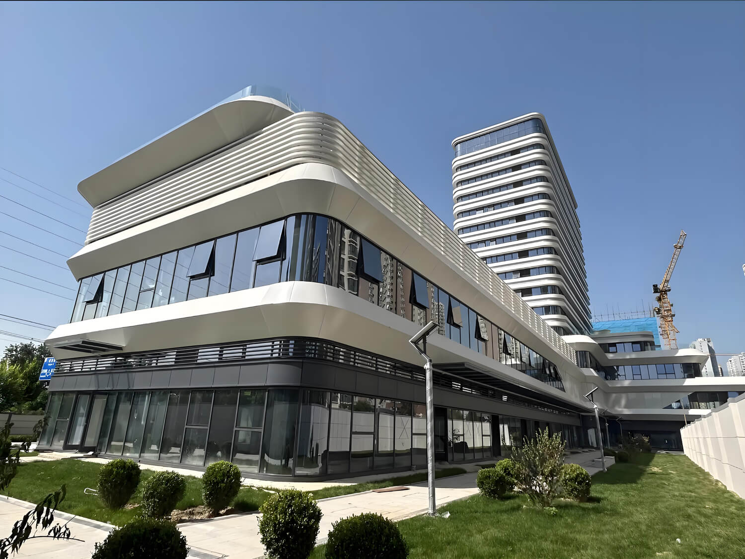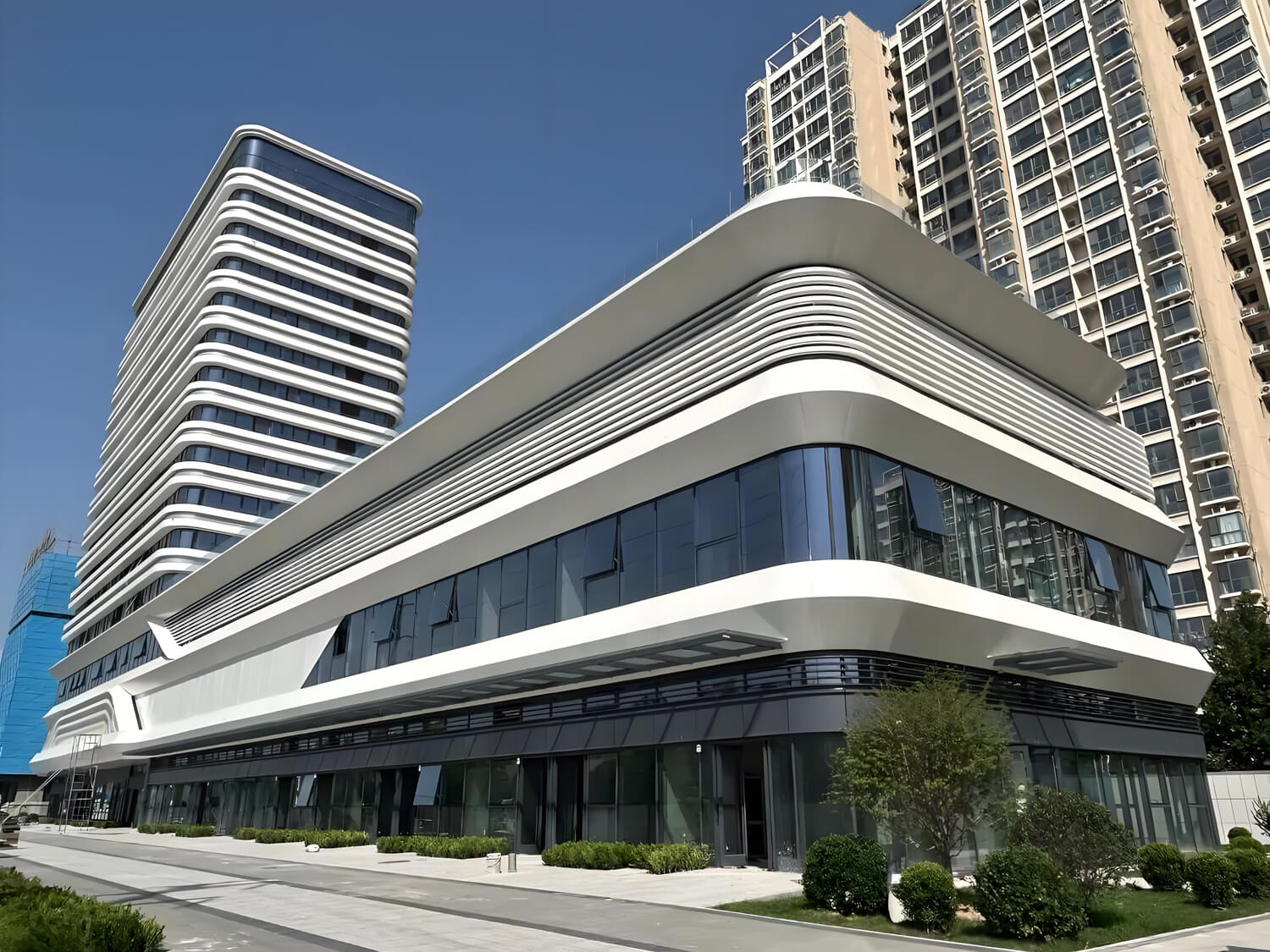 铝单板本身的可塑性极强。通过数控折弯机,它可以做成平板、弧形板、异形板,甚至双曲面板。这意味着建筑师不必被标准板材限制:外立面需要波浪造型?转角需要一体化包覆?氟碳铝单板都可以实现,且接头隐蔽,整体感强。